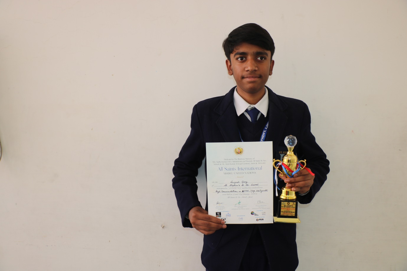 Four students from our school participated in ASIMUN, organized by All Saints Senior Secondary School, Ajmer, on January 17 and 18, 2026. They engaged actively in discussions on a wide range of national and international issues. Showcasing outstanding analytical thinking, diplomacy, and communication skills, Suyash Garg (IX A) received a High Commendation along with a cash prize of Rs 5,000/-.