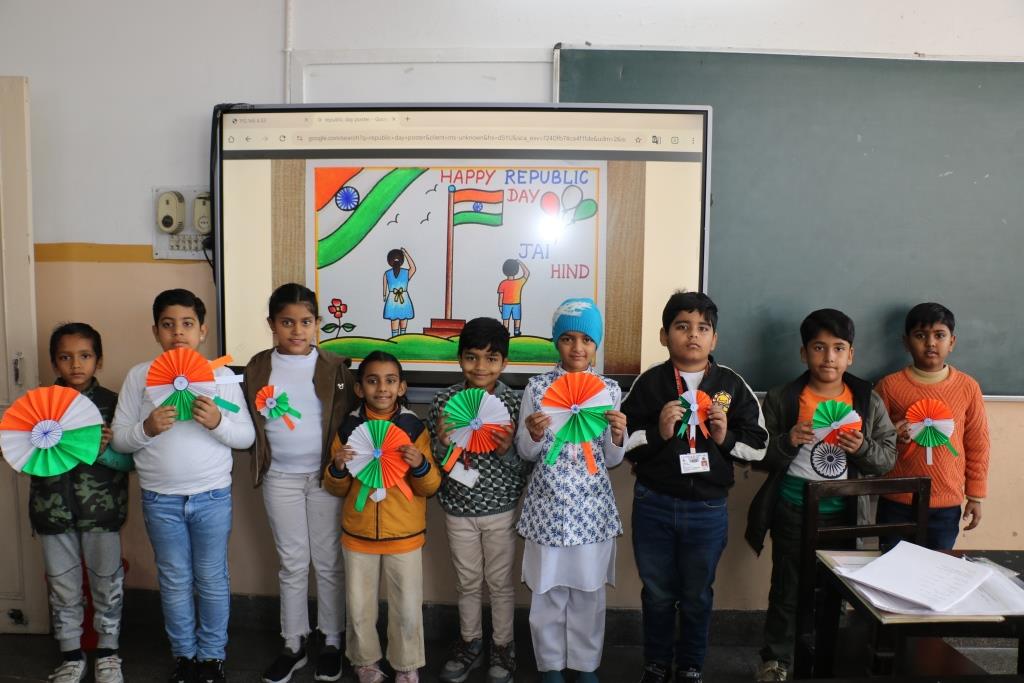 The students from Nursery to Grade III celebrated Pre-Republic Day on January 24, 2026, with great enthusiasm and patriotic fervour. As part of Paper Art – Nurturing the Tricolour Spirit, they enthusiastically engaged in a range of creative activities, crafting paper aeroplanes, peacocks, tiger faces, caps, birds, badges, and other imaginative models.